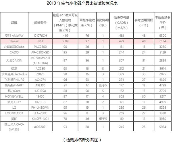 摘要:在2013年上海市消费者权益保护委员会对市场主流空气净化器产品的抽查评比中,Blueair空气净化器以极高的性能,最好的性价比,综合性能排名居首。